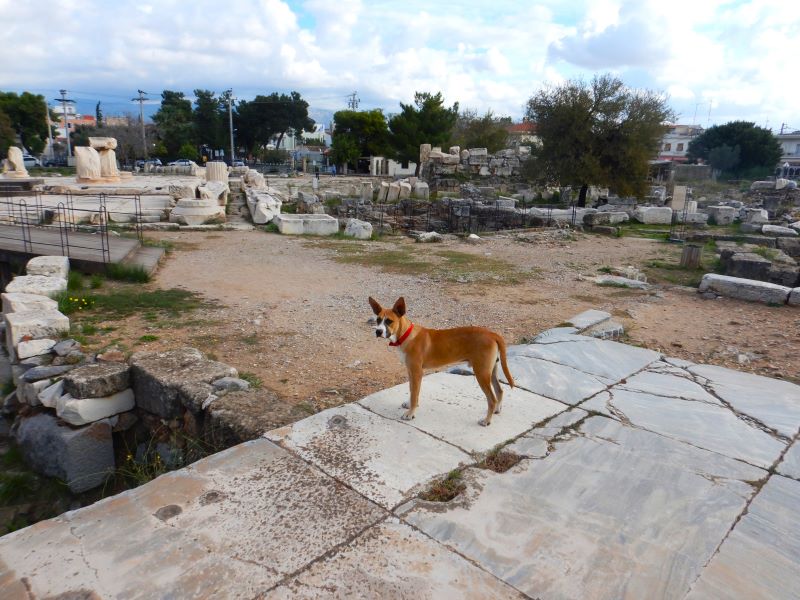 前方に現れて進路を妨げ、避けるとついてくる。首輪はついていたが、恐らくは野良犬だ。ギリシアの街中にはこういった犬が多い。かつてはもっと凶暴な犬が歩き回っていたものの、2004年のアテネオリンピック以降、こうした野良犬は一度捕らえて去勢手術を施し、狂犬病のワクチンを打った後に後に再び放っているのだとか。